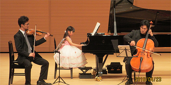 ピアノ学習を続け、人前での演奏にチャレンジしたことをたたえ、